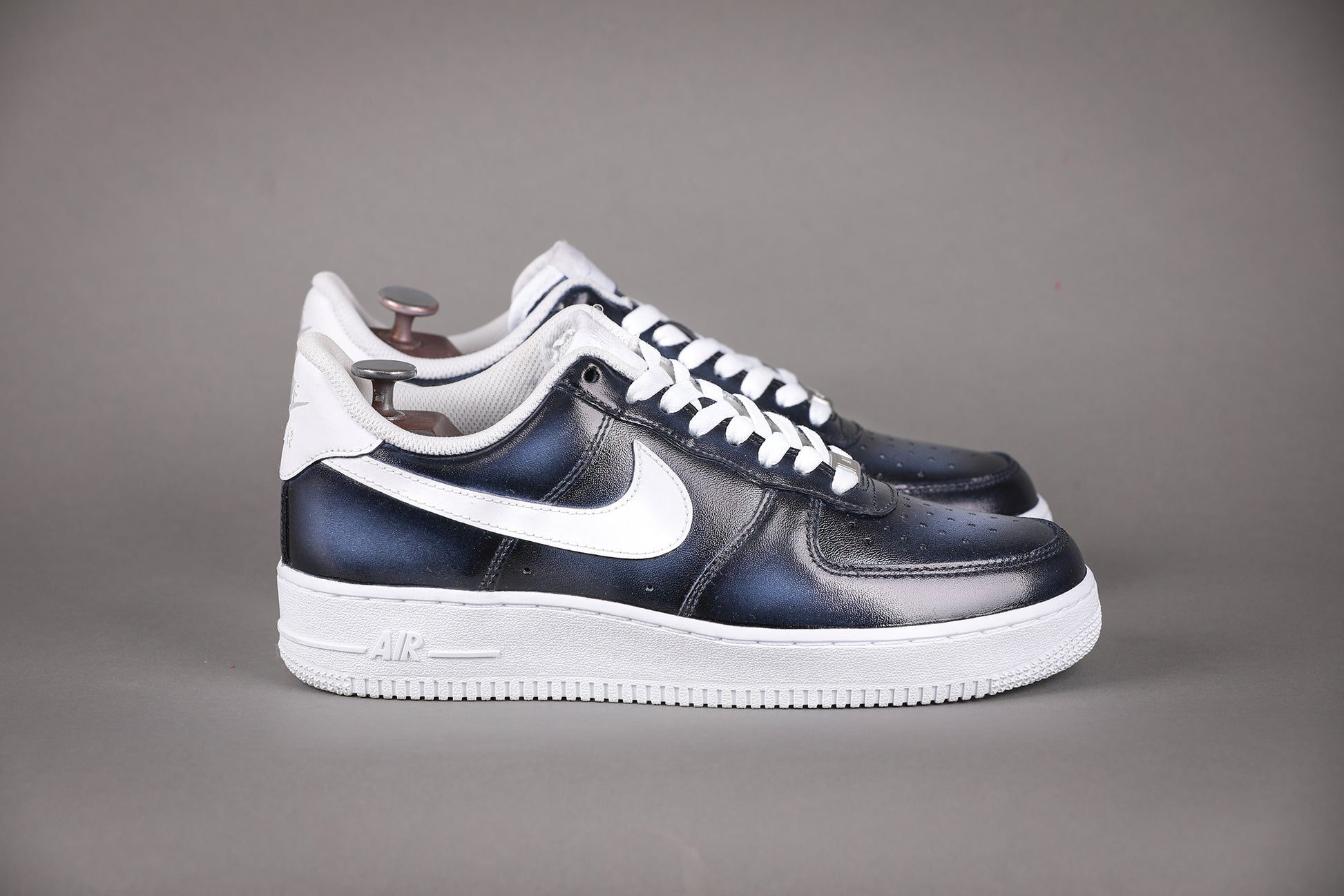 Redécouvrez l'iconique Nike Air Force 1 à travers l'art de la patine sur cuir. Chaque paire est patinée à la main, offrant des nuances et des couleurs uniques qui font de chaque modèle une pièce d'exception.